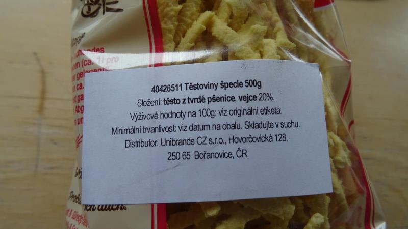 Výrobek obsahoval podstatně méně vajec, než bylo uvedeno na obalu.