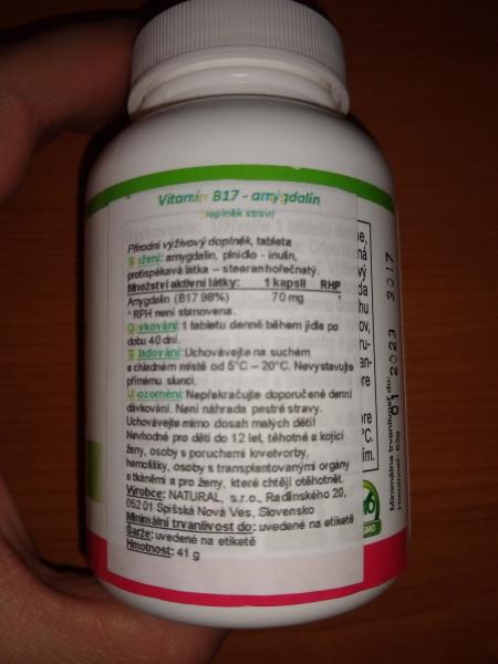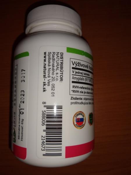 V doplňku stravy byla zjištěna přítomnost amygdalinu v množství, které není možné považovat za bezpečné. Potravina byla vyhodnocena jako škodlivá pro zdraví.