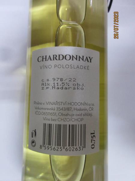 Výrobce: Plněno v: VINAŘSTVÍ HODONÍN s.r.o., Velkomoravská 3543/87, Hodonín ČR