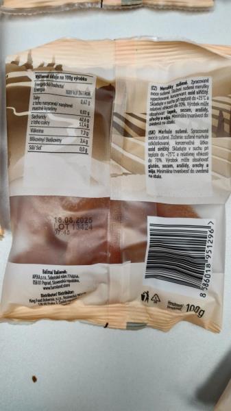 Na povrchu plodů i na vnitřní straně obalu se vyskytovali drobní bílí živí škůdci. Potravina zapáchala po kvašení.