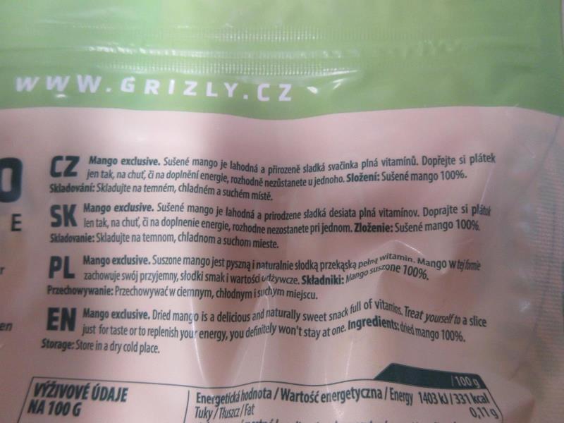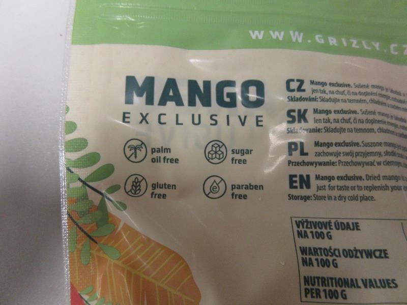 Na obalu ve složení bylo uvedeno, že se jedná o "mango sušené 100%". Laboratorní analýzou byl však prokázán přídavek cukru. Obsah cukru ve výrobku byl podstatně vyšší, než bylo uvedeno na obalu. Potravina nesplňovala legislativní požadavek na sušené ovoce, neboť sušeným ovocem se rozumí ovoce konzervované sušením bez použití přírodních sladidel.