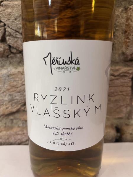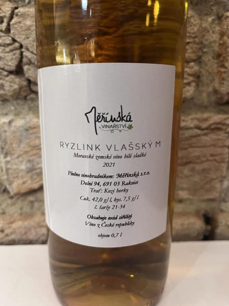 Ryzlink vlašský M, moravské zemské víno bílé, sladké 2021, alk. 13,0 % obj., víno z České republiky.