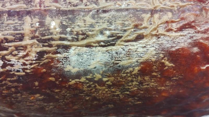 Na povrchu potraviny byl zjištěn výskyt kolonií plísní viditelné pouhým okem. Potravina se nepovažuje za bezpečnou, pokud jeví známky kažení.