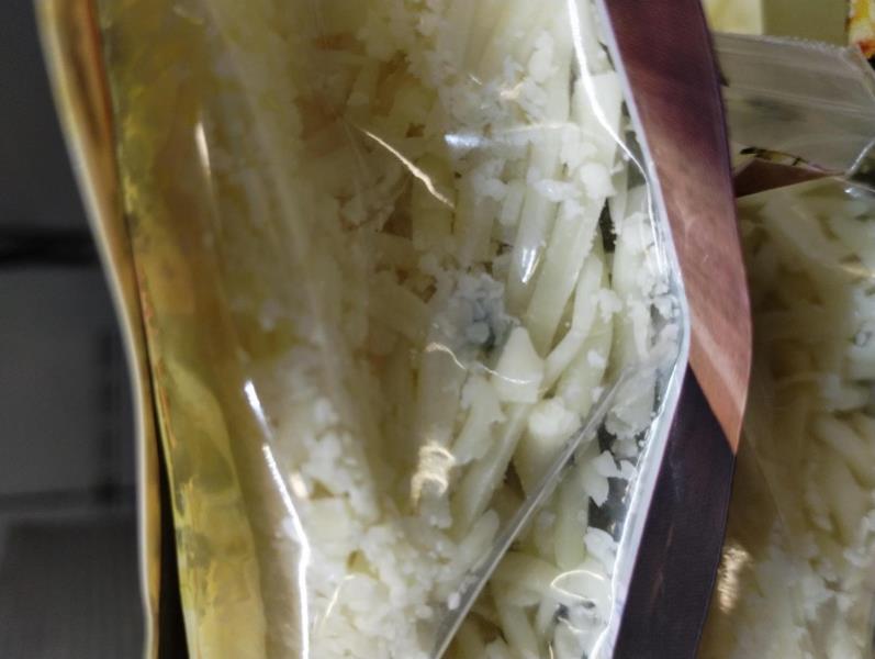 Na povrchu potraviny byl zjištěn výskyt kolonií plísní zelené a bílé barvy viditelné pouhým okem přes obal potraviny. Potravina se nepovažuje za bezpečnou, pokud jeví známky kažení.