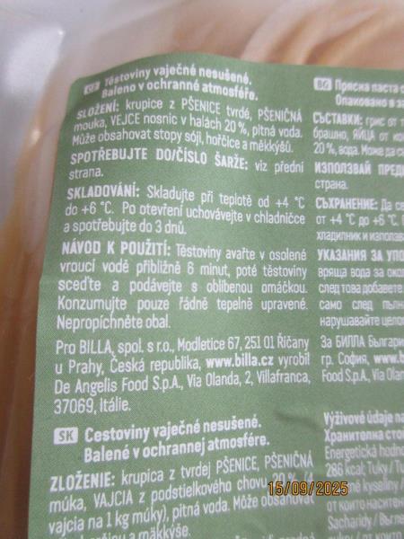 Výrobek obsahoval podstatně méně vajec, než bylo uvedeno na obalu.