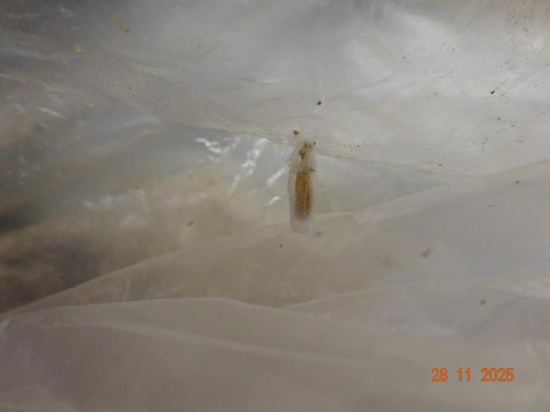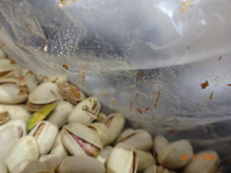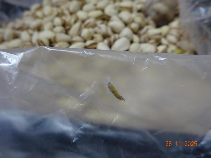 Na povrhu potraviny byly zjištěny stopy po výskytu zavíječe - živí i mrtví jedinci v různých stádiích vývoje.