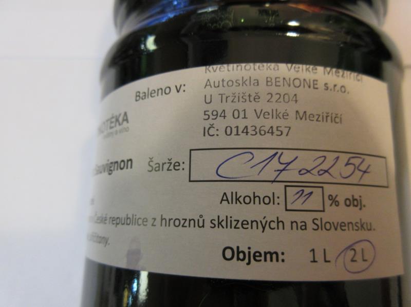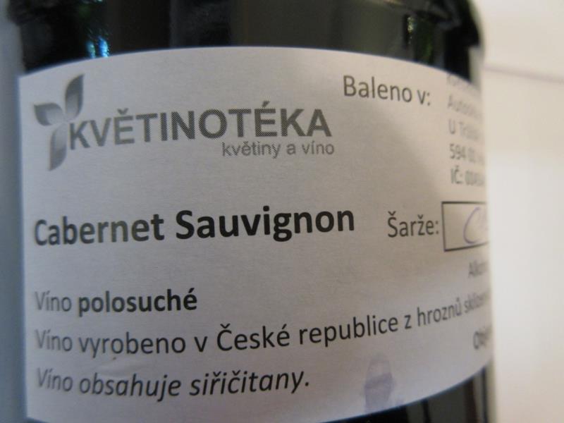 Cabernet Sauvignon, Víno polosuché, Alkohol: 11 % obj., Víno vyrobeno v České republice z hroznů sklizených na Slovensku, Baleno v Autoskla BENONE s.r.o.