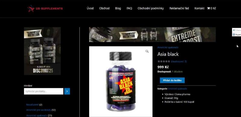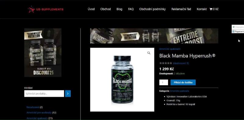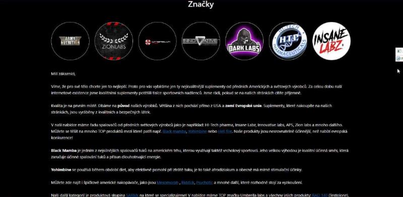 The website is in Czech language. Offered products can be purchased for Czech crowns. The website offers mainly dietary supplements in various categories. Delivery to the Czech Republic is possible.