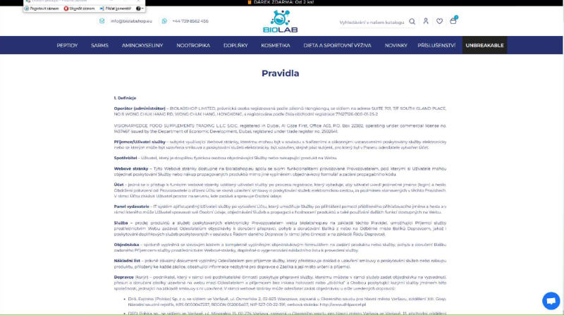 1) Z obchodních podmínek vyplývá, že operátor (administrátor) webové stránky je právnická osoba registrovaná se sídlem v Hongkongu.
