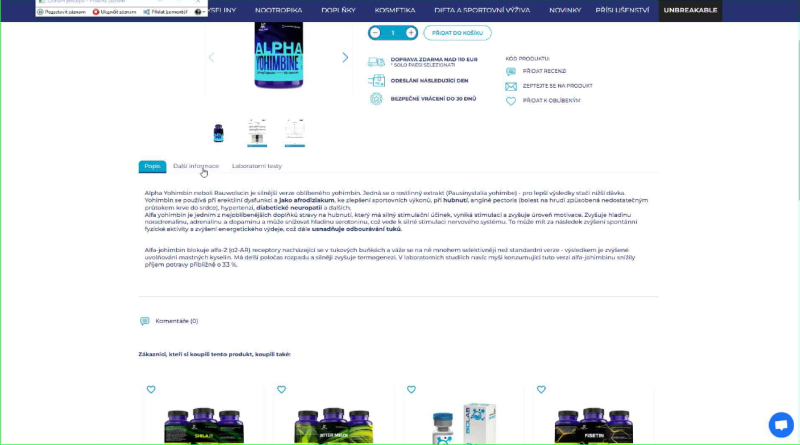 4) U některých produktů není jasné, zda se jedná o léčivo či doplněk stravy (např. Melatonin 1 mg, 60 kapslí nebo Methylenová modř 600 mg, kapalina 30 ml USP Grade). Zároveň je u některých produktů uvedeno: „Produkt (látka) není potravina ani doplněk stravy a není vhodný ke konzumaci lidmi“ (například : Alpha yohimbine 2.5 mg, 60 kapslí). I přesto, že je dále u produktu uvedený obsah účinné látky v jedné kapsli a tvrzení typu: „je jedním z nejoblíbenějších doplňků stravy na hubnutí, který má silný stimulační účinek, vyniká stimulací a zvyšuje úroveň motivace.“