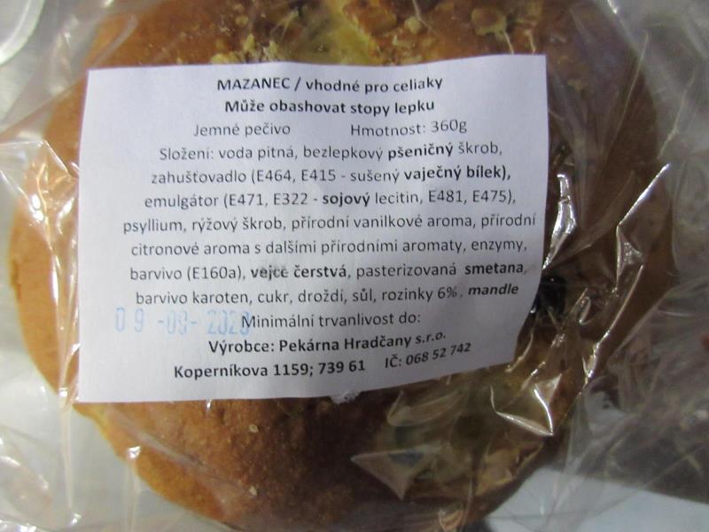 Výrobce: Pekárna Hradčany s.r.o., Koperníkova 1159, Třinec