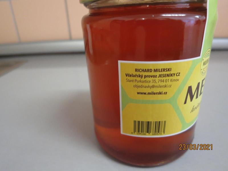 Výrobce: na etiketě uvedeno: Richard Milerski Včelařský provoz JESENÍKY CZ, Staré Purkartice 35, 794 01 Krnov