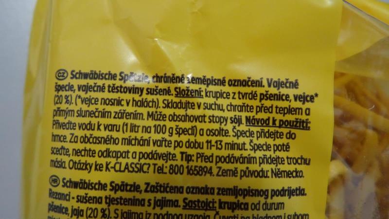 Výrobek obsahoval podstatně méně vajec, než bylo uvedeno na obalu.