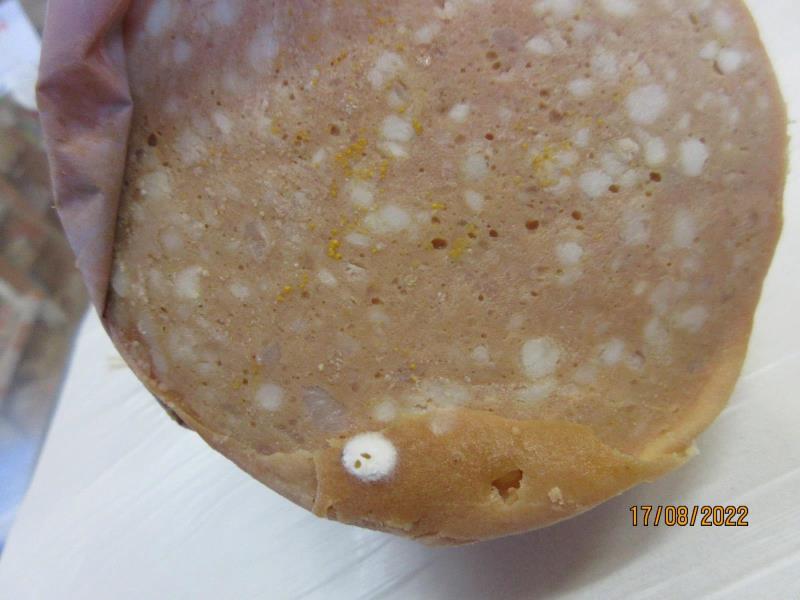 Na povrchu potraviny se vyskytovaly kolonie plísní okem viditelné. Potravina se nepovažuje za bezpečnou, pokud jeví známky kažení.