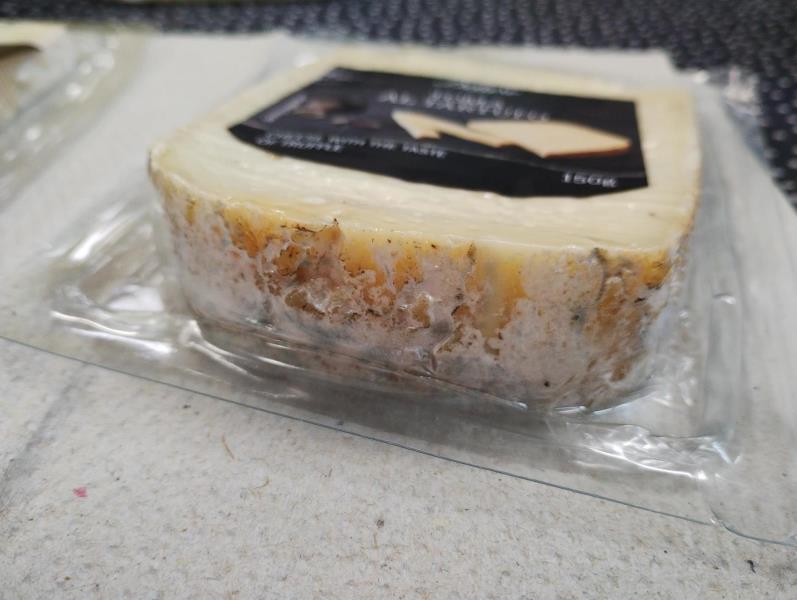 U části kontrolovaných balení se na povrchu sýra pod neporušeným obalem vyskytovaly kolonie plísní. U části balení byl zjištěn výskyt hnědé tekutiny. Potravina se nepovažuje za bezpečnou, pokud jeví známky kažení.