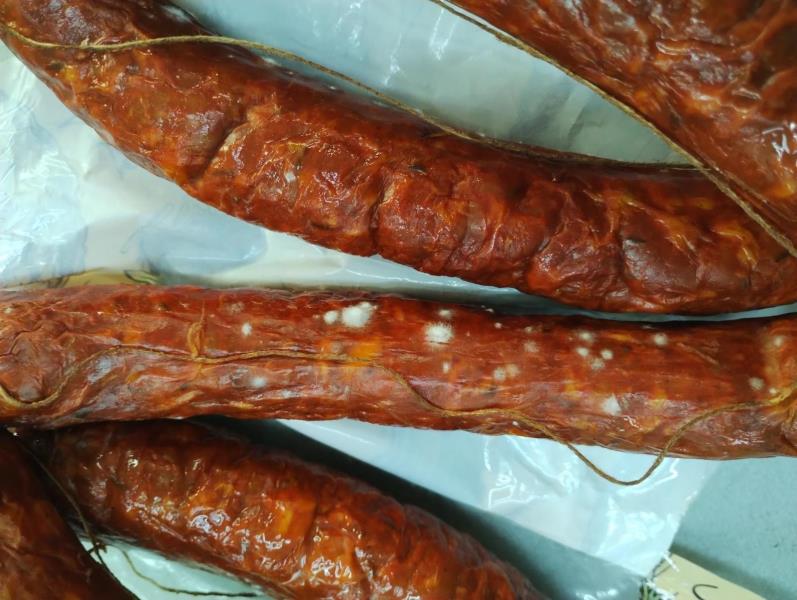 Na povrchu potraviny se vyskytovaly kolonie plísní bílé barvy. Potravina se nepovažuje za bezpečnou, pokud jeví známky kažení.