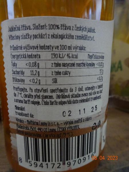 Výrobce: Moštárna Louny ln s.r.o., Vladimirská 2501, Louny