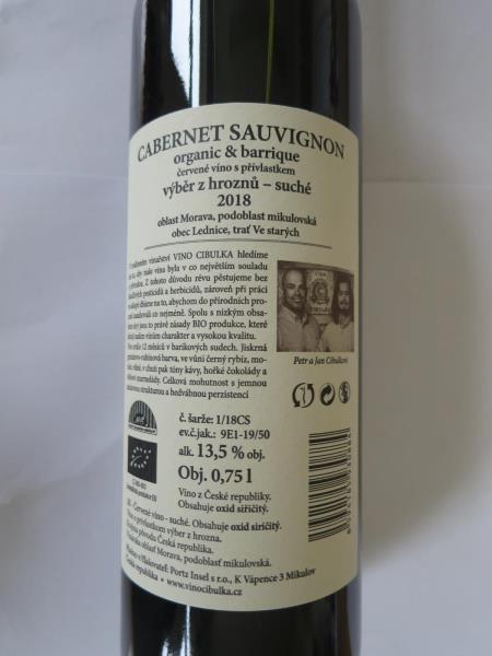 Cabernet sauvignon - jakostní víno červené s přívlastkem výběr z hroznů, 2018, suché, alk. 13,5%obj.
