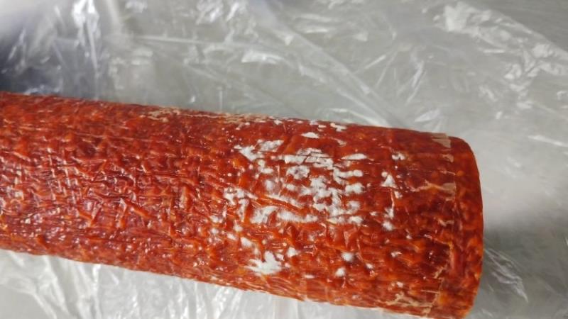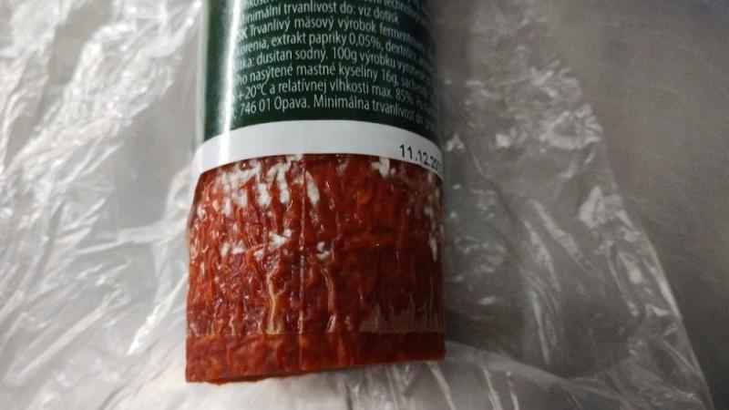Na povrchu potraviny se vyskytovaly kolonie plísní bílé barvy. Potravina se nepovažuje za bezpečnou, pokud jeví známky kažení.