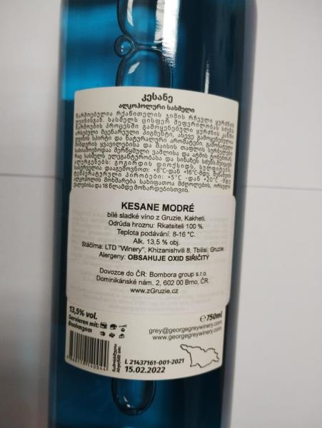 KESANE MODRÉ, bílé sladké víno z Gruzie, Kakheti, alk. 13,5 % obj.,2021