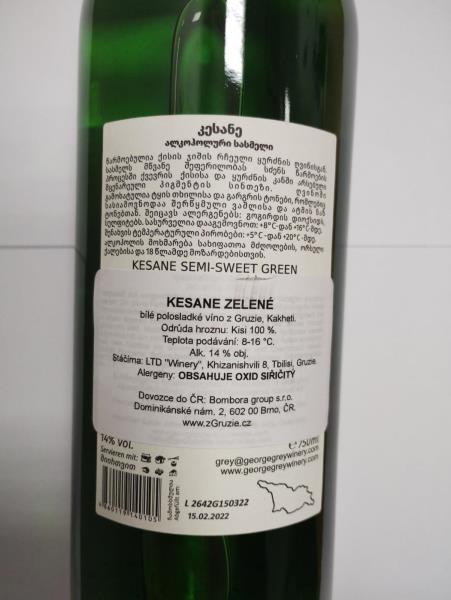 KESANE ZELENÉ, bílé polosladké víno z Gruzie, Kakheti, alk. 14 % obj.,2021