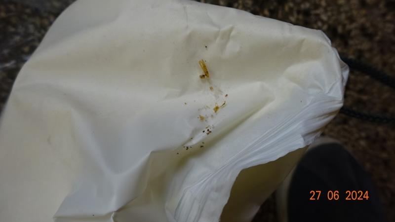 Na obalu potraviny i uvnitř balení byli zjištěni škůdci a stopy po jejich působení (pavučinky).