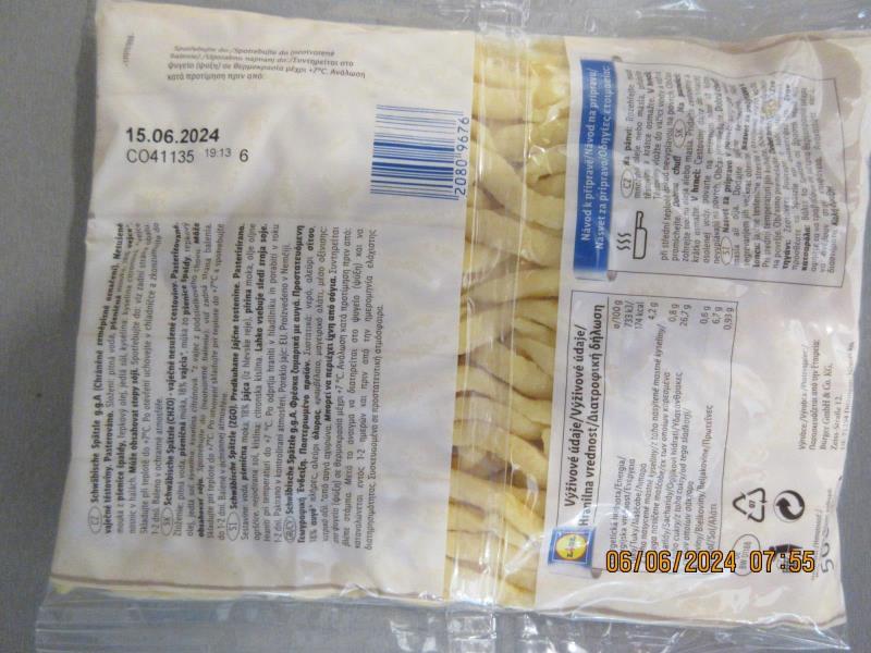 Výrobek obsahoval podstatně méně vajec, než bylo uvedeno na obalu.