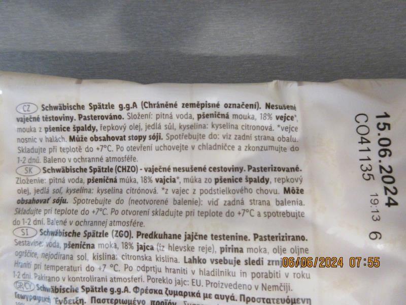 Schwäbische Spätzle g.g.A, nesušené vaječné těstoviny
