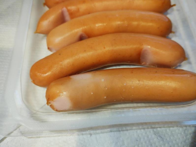Výrobek vykazoval známky kažení. Na povrchu i mezi jednotlivými párky byl patrný bílý šlem a drobné kolonie mikroorganismů. Potravina se nepovažuje za bezpečnou, pokud jeví známky kažení.