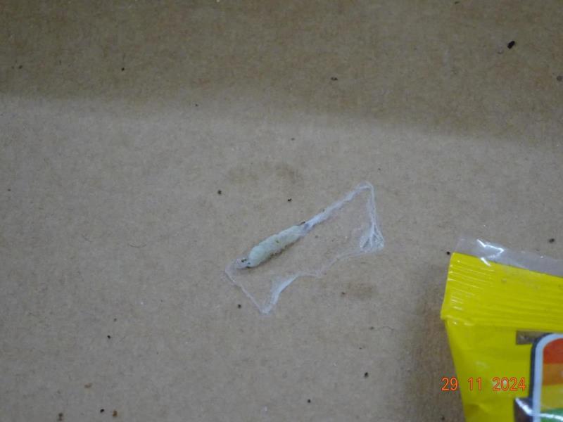 Na vnitřní i vnější straně obalu se vyskytovali živí škůdci v různých vývojových stádiích. Obal byl poškozený činností škůdců.