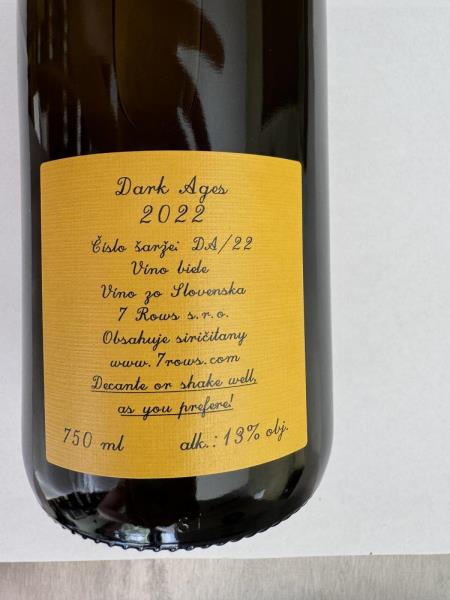 Dark ages - víno bílé, suché, alk. 13%obj., víno ze Slovenska, obsahuje siřičitany, plněno v: 7 Rows s.r.o., Bratislava, Slovensko, 2022