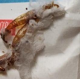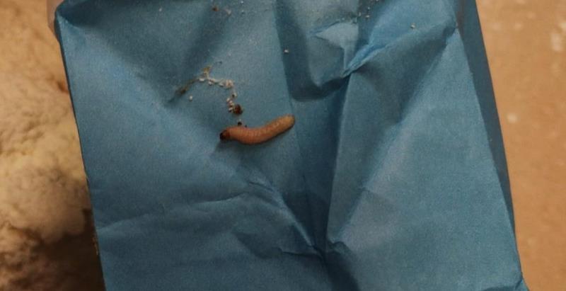 Na obalu výrobku se vyskytovali živí škůdci a stopy po jejich působení - přítomnost pavučinek, zámotků. Výskyt škůdců byl zjištěn i na regálu, z něhož byla potravina nabízena k prodeji.