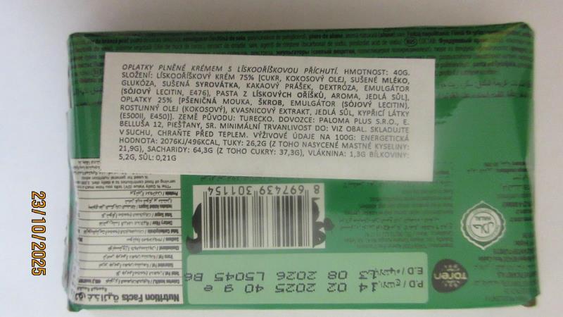 Delisso OPLATKA PLNĚNÁ KRÉMEM S LÍSKOOŘÍŠKOVOU PŘÍCHUTÍ