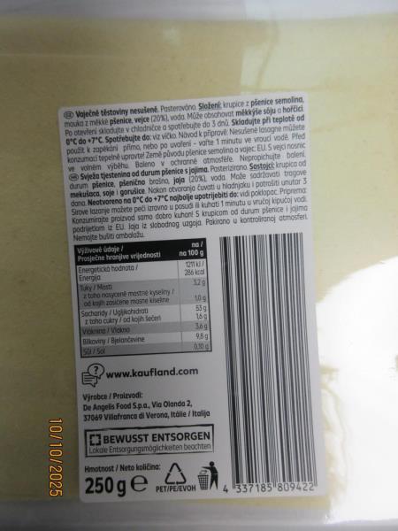 Skupina potravin: Těstoviny / Těstoviny s vaječnými produkty