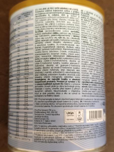 Skupina potravin: Zvláštní výživa / Potraviny pro kojence a malé děti