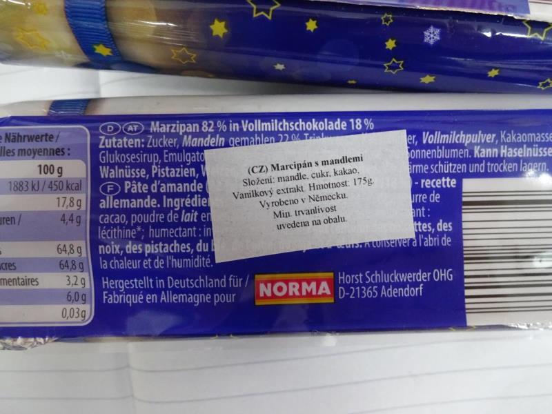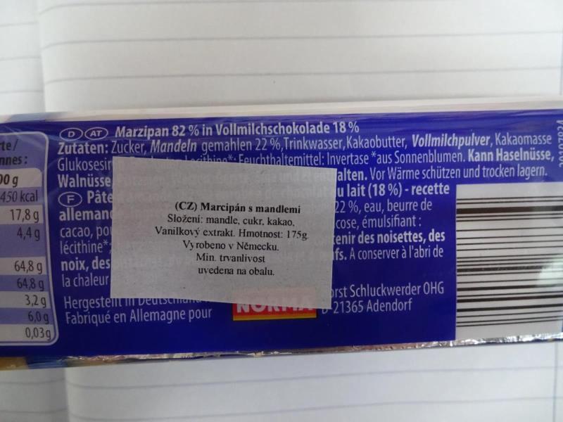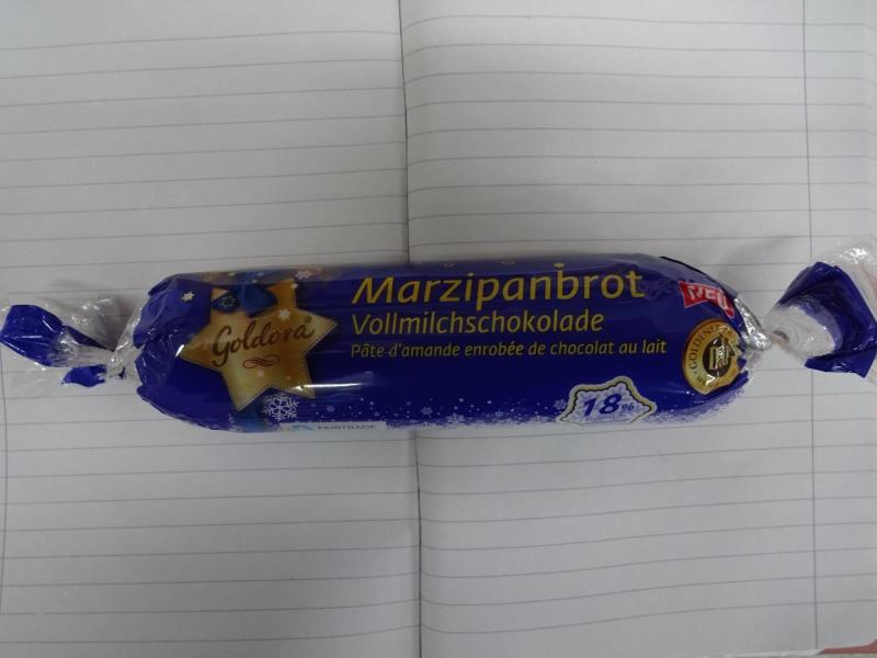 Marcipán s mandlemi (Marzipanbrot Vollmilchschokolade Pate d´amande enrobée de chocolat au lait)