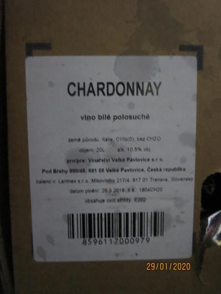 Chardonnay, víno bílé polosuché, alk. 10,5 % obj., bez CHZO