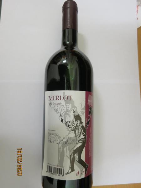 MERLOT, víno červené, vyrobeno v Maďarsku, číslo šarže CS 117/19, suché, alk. 12%obj., s CHZO obl. Dunantuli, plněno v: Vinacz, spol.s.r.o