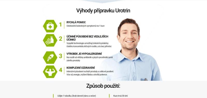 Webové stránky jsou v českém jazyce. Nabízený produkt je možné koupit za české koruny. Na stránkách je nabízen doplněk stravy Urotrin, který údajně pomůže vyléčit řadu nemocí souvisejících s fungováním mužských pohlavních orgánů.