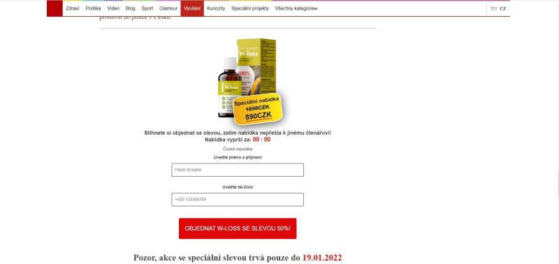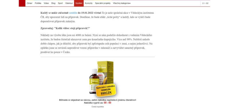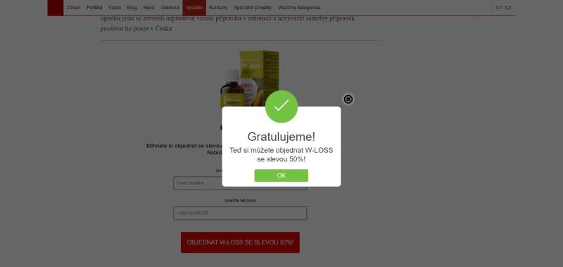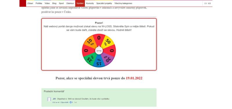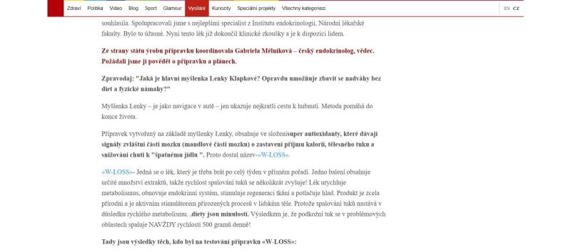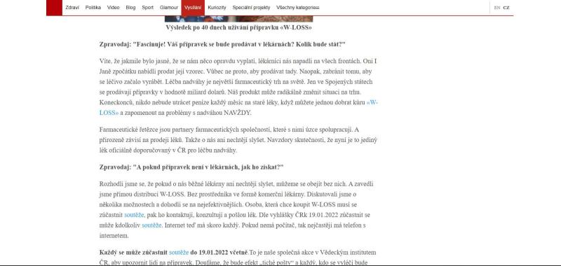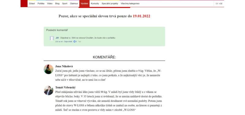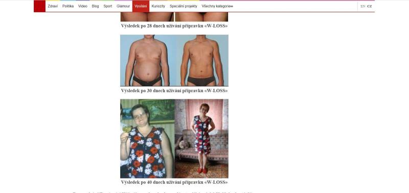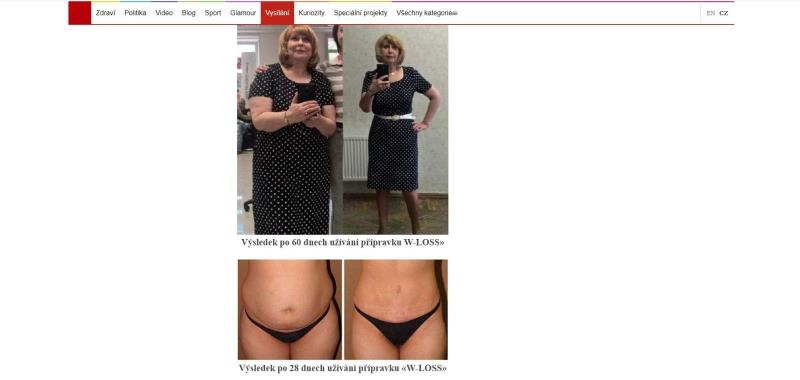 The website is in Czech language. The product is offered for Czech crowns. Weight loss treatment W-loss is offered on the website in question.
