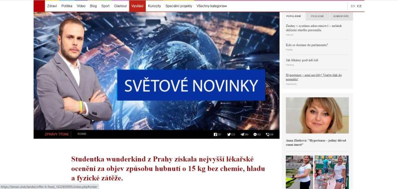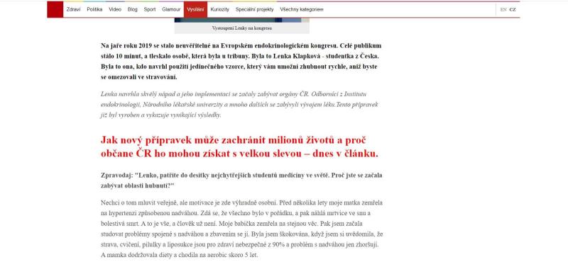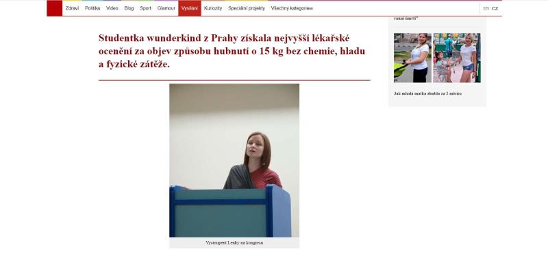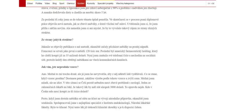 6) The website indicates non-existing persons (endocrinologist Gabriela Mělníková, student Lenka Klapková – alleged person proposing the use of a unique formula) and non-existing institutions (Scientific Institute of the Czech Republic).